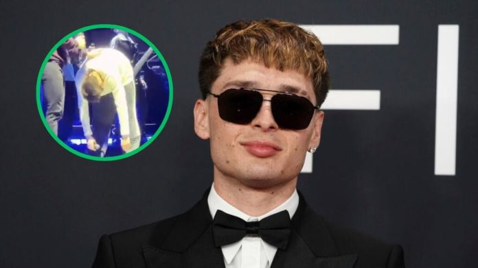 Un video viral de Peso Pluma ha encendido la conversación en redes sociales, luego de que se difundieran imágenes en las que el artista aparece en una postura inusual durante uno de sus conciertos. El clip, de apenas unos segundos, muestra al intérprete con los brazos suspendidos mientras permanece agachado sobre el escenario, una posición que rápidamente generó especulación entre usuarios.