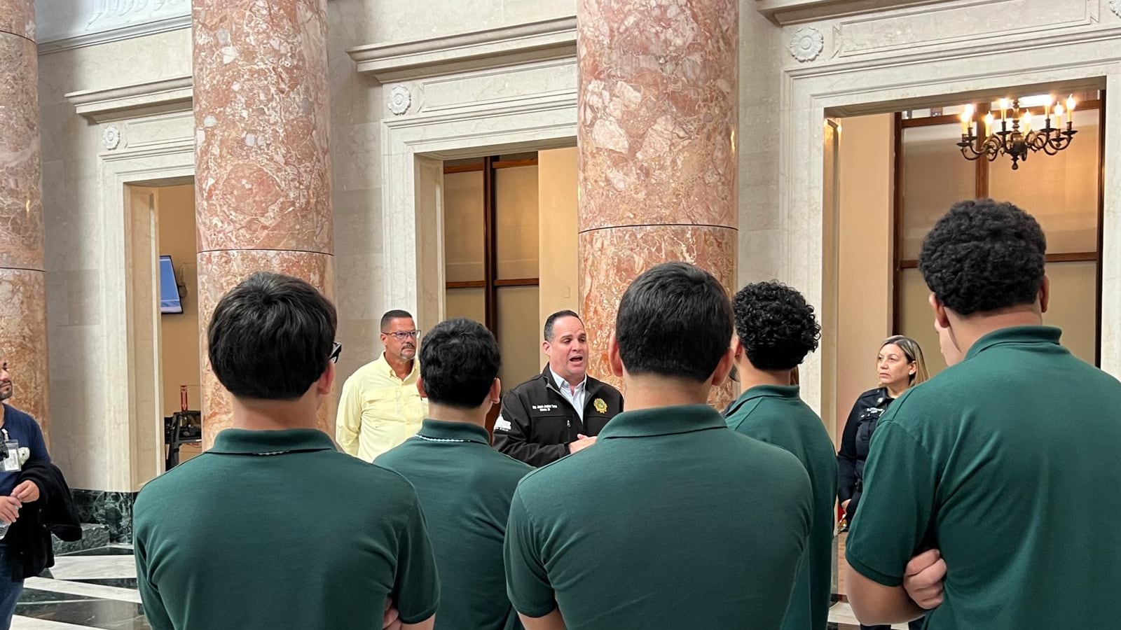 El representante Josean Jiménez recibió en el Capitolio a un grupo de diez jóvenes, de 15 a 18 años de edad, confinados de su distrito representativo (Barranquitas, Coamo, Corozal, Orocovis y Villalba) para ser partícipes una visita educativa y un recorrido por las mencionadas instalaciones sanjuaneras.