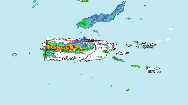 El Servicio Nacional de Meteorología (SNM) en San Juan informó el viernes que 10 municipios del interior y oeste permanecen bajo advertencia de inundaciones hasta las 5:00 de la tarde debido a lluvias asociadas a tormentas eléctricas.