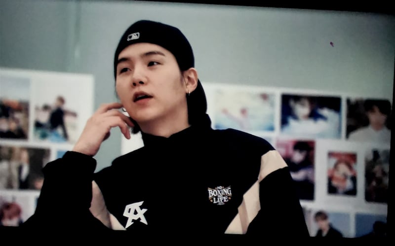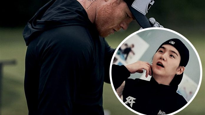 El cruce cultural que nadie vio venir —pero que emocionó a fans mexicanos— ocurrió en uno de los momentos más comentados del documental BTS: El regreso, cuando Suga aparece vistiendo un conjunto con el lema “Boxing is Life”, perteneciente a la línea de ropa del campeón mexicano Saúl Canelo Álvarez.