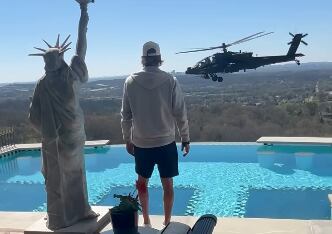 Las imágenes, compartidas por el propio artista en redes sociales, muestran al músico saludando mientras dos helicópteros de ataque tipo Apache se aproximan a su propiedad, pasando a corta distancia de su piscina en una maniobra que ha generado cuestionamientos por su cercanía a una zona residencial.