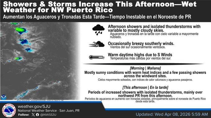 Pueden ser peligrosas aunque el mar luzca tranquilo.#PRwx #USVIwx pic.twitter.com/JG6xvecIWi— NWS San Juan (@NWSSanJuan) April 8, 2026