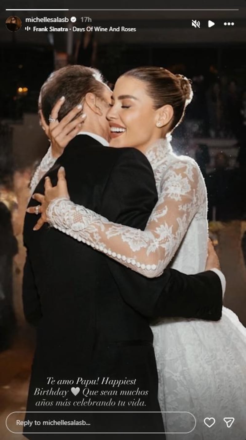 En el registro se observa a la modelo vestida de novia junto al intérprete de “La incondicional” en un momento de afecto. El mensaje que acompañó la postal fue: “¡Te amo, papu! El cumpleaños más feliz. Que sean muchos años más celebrando tu vida”.